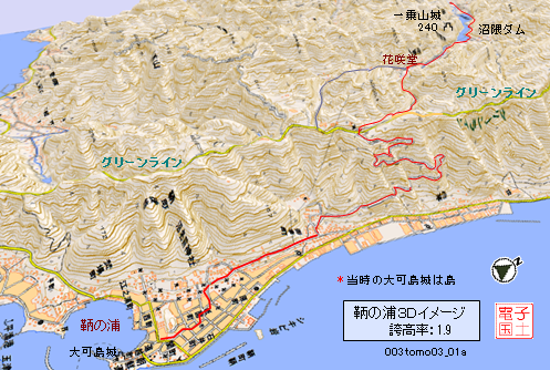 応安4年(1371)の今川了俊の「道ゆきぶり」に於ける「沼田」長期滞在は、沼田川(入江)右岸・入海南西岸の下北方及び南方付近と思われ、蟇沼(ひきぬ)から北上したと思われる。下北方・南方は当時大きく入海或いは干潟化しつつあった海岸の南西沿岸部に位置する。また、糸崎浦から「沼田」に入るに海行であったか陸行であったかも文脈から確定できないが、三原付近は海行したと思われる。ここは三原市史やその他の文献で、じっくり地勢確認の必要があると思うが未確認。当方の住む地は異国の片田舎なのだ。今回、本稿掲載にあたり、新高山城の写真撮影と本郷市を慌しく散策した後、美ノ郷 ・今津から山田経由鞆の浦まで実査したのみなのだ。山田の山間部で道に迷い、九十九折り急坂からの鞆の浦写真撮影は薄暗くなってしまった。