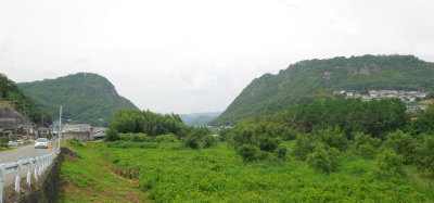 悪しき城、「三尾城」のある城山(じょうやま)は、熊毛・玖珂郡境の中山峠を玖珂郡に入り差川(指川)の東端から眺めれば、三つの尾根が繋がったように見えます。(注:戦国期、熊毛郡呼坂を過ぎて中山峠の熊毛郡側から玖珂郡高森の手前付近までの山陽道筋広域地名を各種古文書から周防国道前:どうぜんという。)
